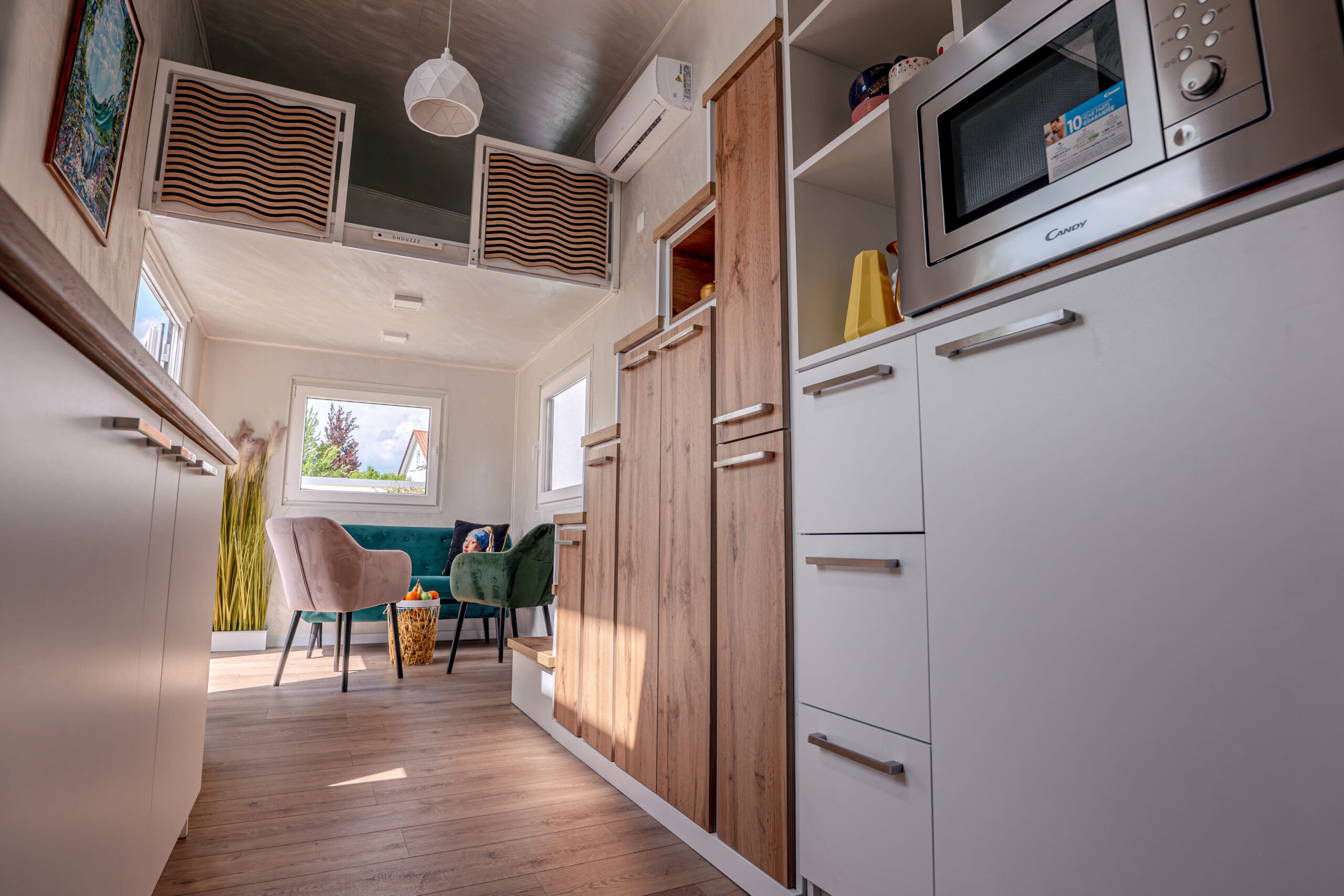 Ausgestattet mit hochmodernen Armaturen und einem intelligenten, platzsparenden Design bieten unsere modularen Häuser – darunter auch Tiny Houses – umfassenden Wohnkomfort auf bemerkenswert kompakter Grundfläche.